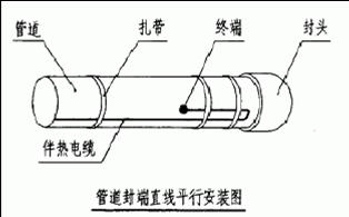 4)直線平行安裝時,伴熱電纜應沿彎頭凸面安裝,并在彎頭的兩端及中間作固定 |