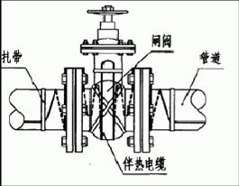 5、一切散熱體(如支架、閥門、法蘭等)應按設計圖請求預留所需電伴熱帶長度,將此段電伴熱帶纏繞于散熱主體上并固定。